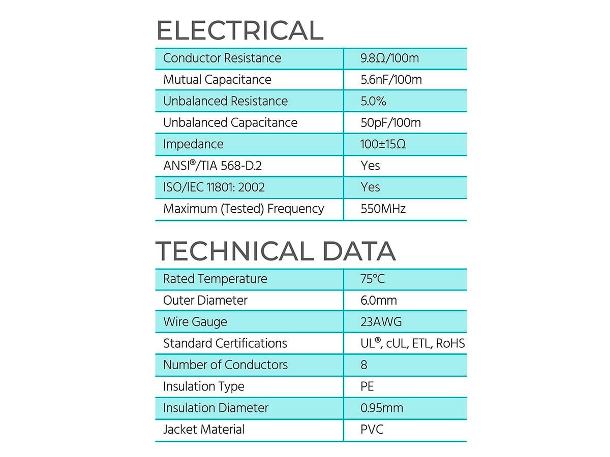 • 1 Gigabit at 23AWG tested up to 550MHz bandwidth